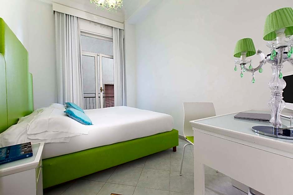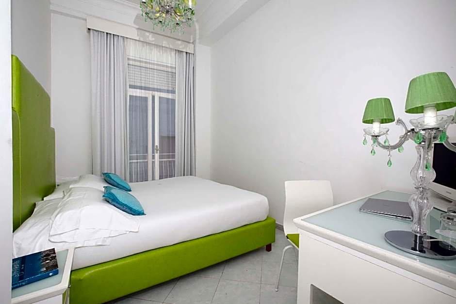 This room includes a cable TV, a desk and a coffee machine.